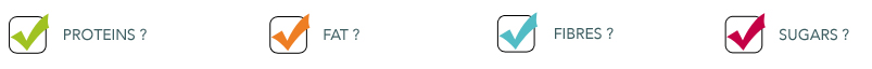 ✓ Nutritional values: proteins, fat, carbohydrates, fibres ...
